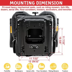 Universal Tractor Seat,Highback Low Suspension Forklift, Adjustable Backrest and Slide Rails,Adjustable Armrests Shock Absorber Heavy Duty Seat for Toro Mower Excavator Harvester